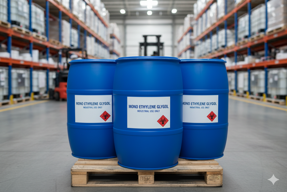 Mono Ethylene Glycol (MEG) is a clear, colorless, odorless, and slightly viscous liquid primarily used as a raw material in the manufacture of polyester fibers, resins, and antifreeze formulations. It is a key industrial chemical derived from ethylene oxide and plays a crucial role in numerous chemical and industrial processes.
